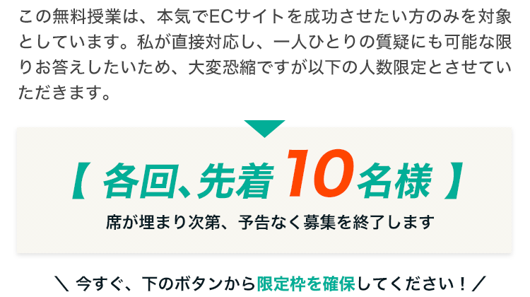 あなたからお金をいただくことが目的ではありません。まずはこの価値ある情報を知っていただき、あなたのビジネスを成功させるための「気づき」を得ていただくためです。